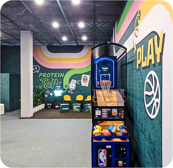 - Area “Game” con canestro brandizzato Amadori per sfide all’ultimo tiro
