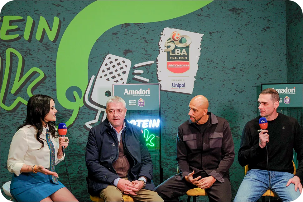 - Salottino “Amadori Protein Talk”, progettato per ospitare le dirette di SKY SPORT