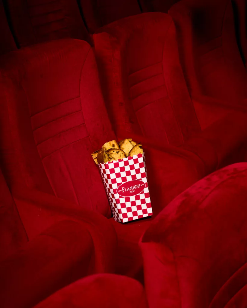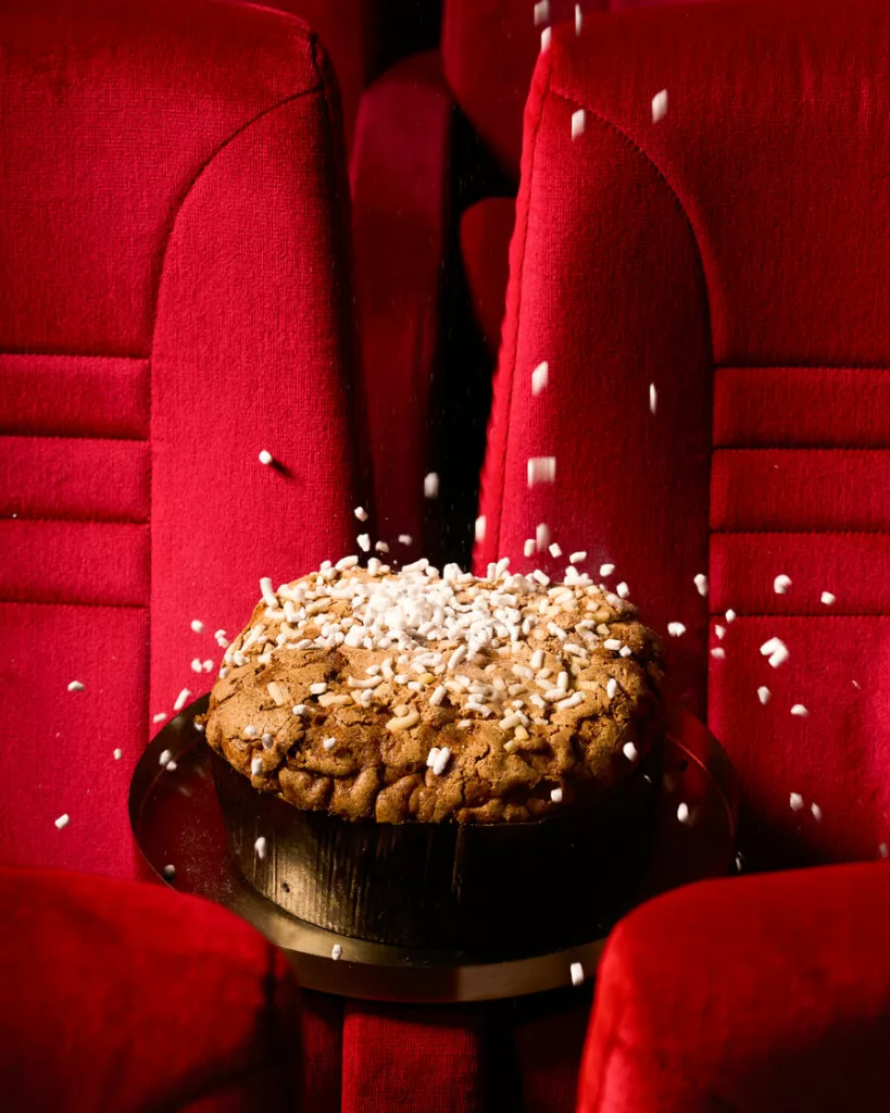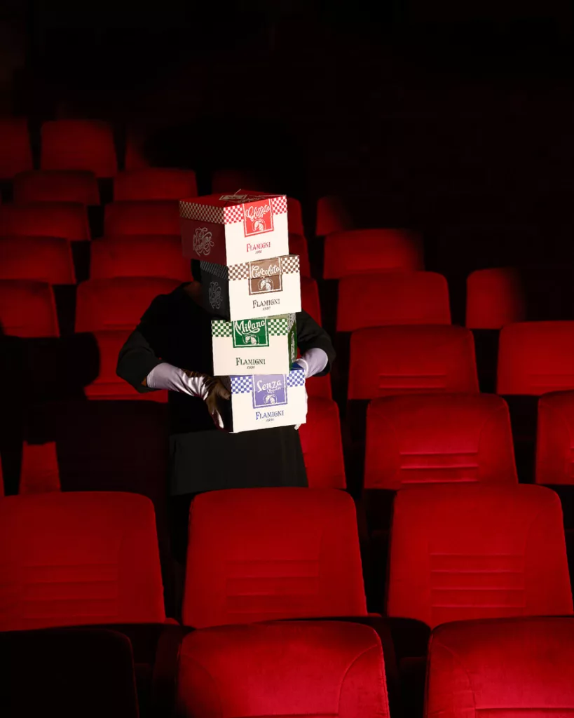 Infatti il tema dello spettacolo non è definito come una caratteristica del gusto, ma si pone come protagonista, proprio accanto al gusto, esaltando l’unicità del brand. Abbiamo scelto un Cinema Teatro come location ideale per la nostra campagna multicanale, con uno shooting che ha messo il panettone al centro della scena. Nello stesso spazio, abbiamo organizzato una serata speciale: gli ospiti del cinema hanno potuto gustare una fetta di panettone in grande formato, servita nei tradizionali contenitori da popcorn.