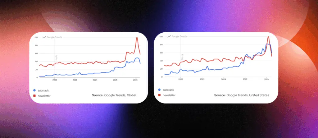 Nel 2025 la piattaforma ha superato i 5 milioni di abbonamenti a pagamento ed è stata valutata 1,1 miliardi di dollari, due segnali che indicano una traiettoria ormai strutturale più che episodica. Negli Stati Uniti le ricerche per il termine “Substack” nella seconda metà del 2025 sono state addirittura superiori a quelle per il termine “Newsletter”.